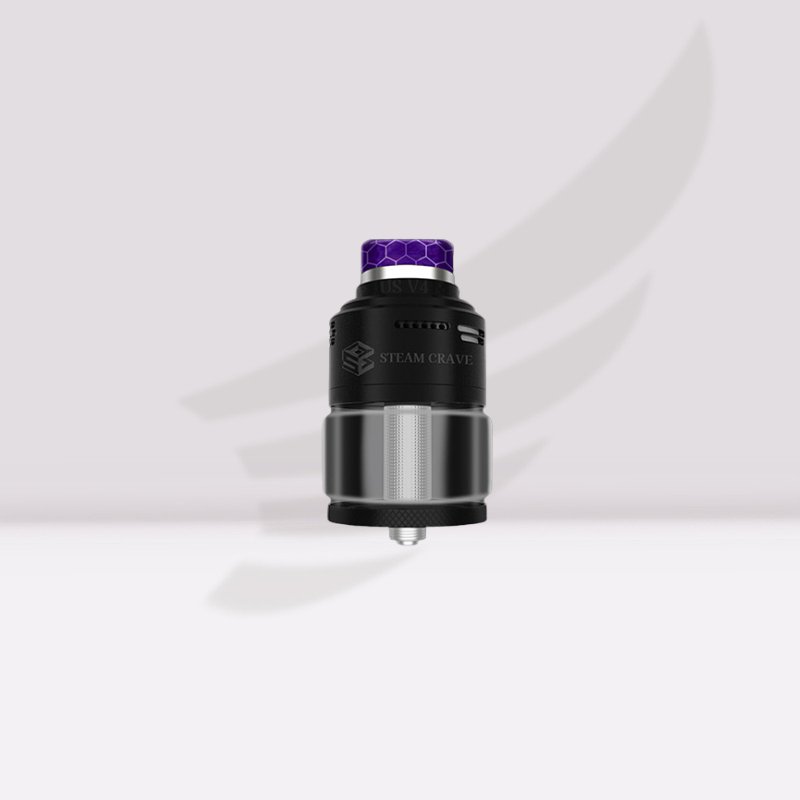 Steam Crave permet de transformer l’Aromamizer Plus V4 RDTA en dripper simplement en retirant la cheminée et le réservoir. En mode RTDA, il conserve son diamètre de 30 mm et offre une cuve de 3 ml, idéale pour une vape plus directe et centrée sur les arômes.